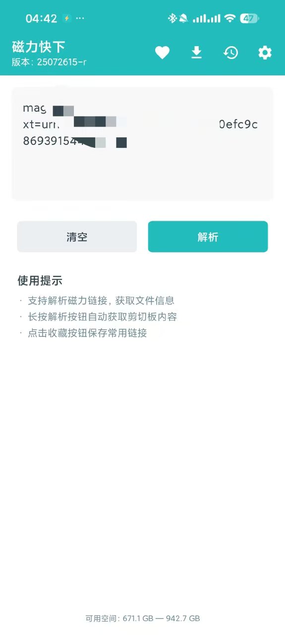 【软件介绍】磁力快下是一款专为快速解析和下载磁力资源设计的应用工具。它支持多种下载协议,包括HTTP、FTP、BT、迅雷专用链、磁力链接和电驴等,无需依赖多个下载工具。用户只需在解析框中复制想要解析的磁力链接,即可快速开始下载过程。该应用界面清爽,全程无广告推送,确保用户享受纯粹的下载体验。此外,磁力快下突破速度限制,在网络条件允许的情况下,能以最大带宽进行下载,大幅缩短文件获取时间。无需登录注册,即装即用,非常适合需要高效下载资源的用户。